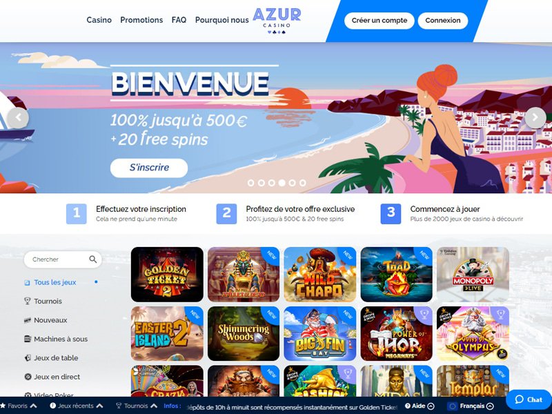 Au sein de le monde fascinant des casinos en ligne, Azur Casino s'affirme comme une nouvelle plateforme intéressante qui attire attire l'intérêt des nombreux joueurs. Avec une interface une présentation élégante ainsi qu'une une offre variée des divertissements, cette récente plateforme suscite beaucoup d' questions. Que vaut vraiment Azur Casino? Est-ce qu'il est à la hauteur de sa renommée? Dans ce présent texte, nous allons explorer analyser les différents avis des joueurs, ses atouts du ce, ainsi que les avantages attractifs qui pourraient bien faire la distinction.